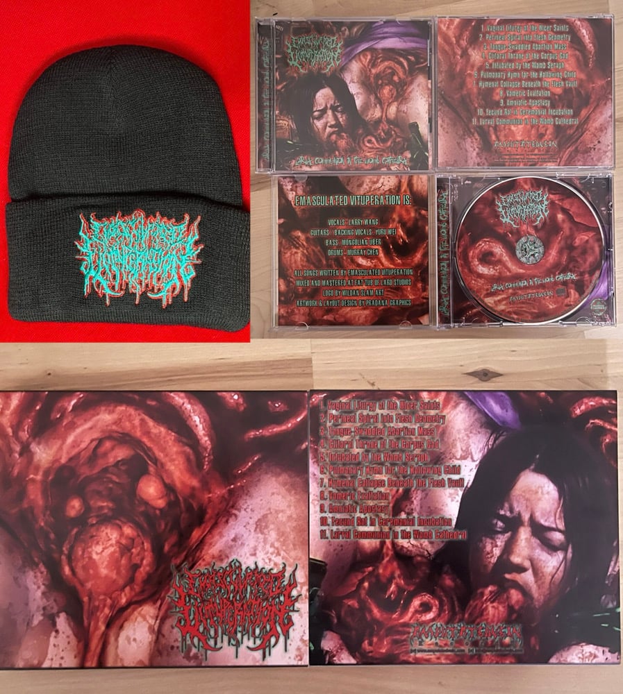 Emasculated Vituperation – Larval Communion in the Womb Cathedral has officially arrived, and it’s every bit as violent, unhinged, and transcendently brutal as you hoped.